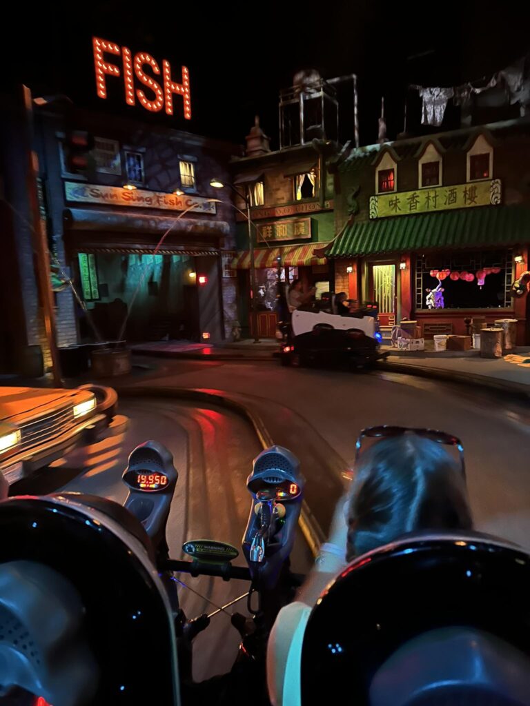 Nearby, we took on Men in Black Alien Attack, another brilliant interactive shooting ride where you’re competing for the highest score. All of us loved this one, and it became another competitive highlight of the day.