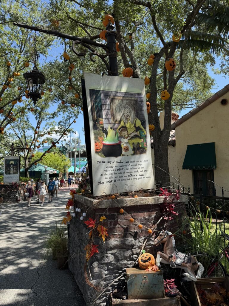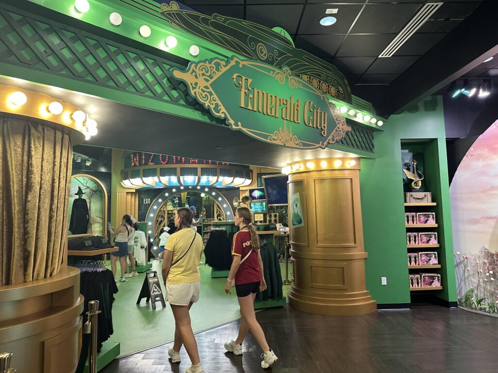 At the park entrance, we popped into Wicked: The Experience. This new immersive exhibit showcases costumes, props, and photo ops themed around Elphaba and Glinda. For fans of the film, it’s well worth visiting.