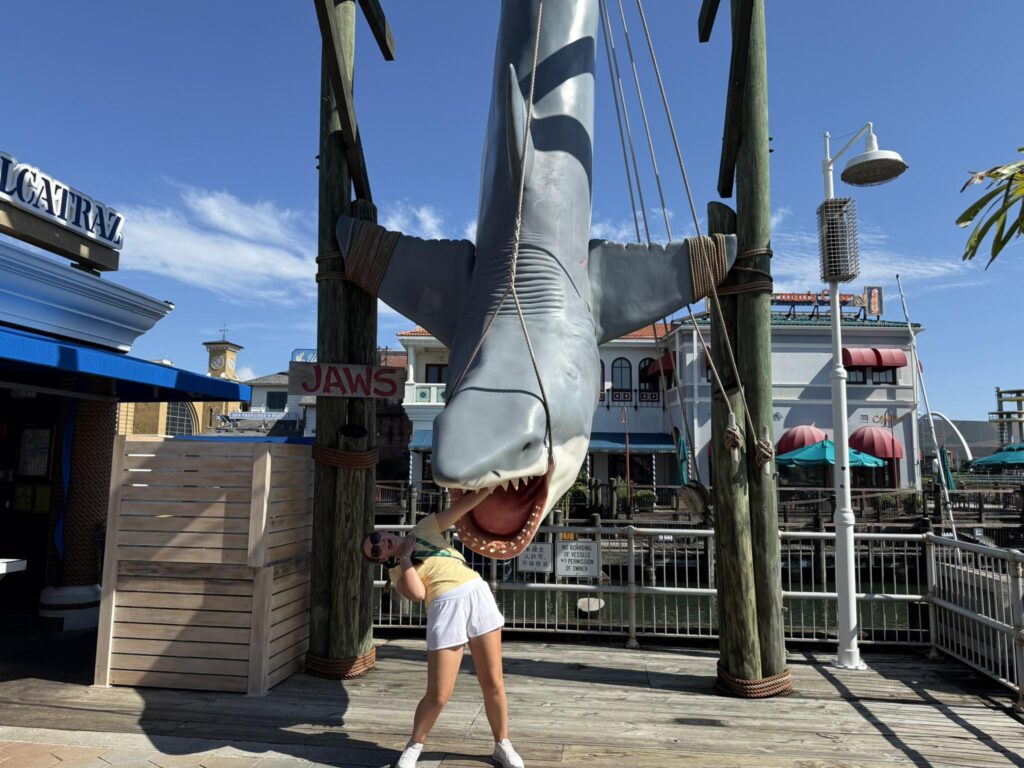 Over in San Francisco, nostalgia hit again as we spotted the Jaws photo-op. For long-time visitors to Universal, the Jaws ride remains a dearly missed classic, and we couldn’t resist snapping a family picture here.
