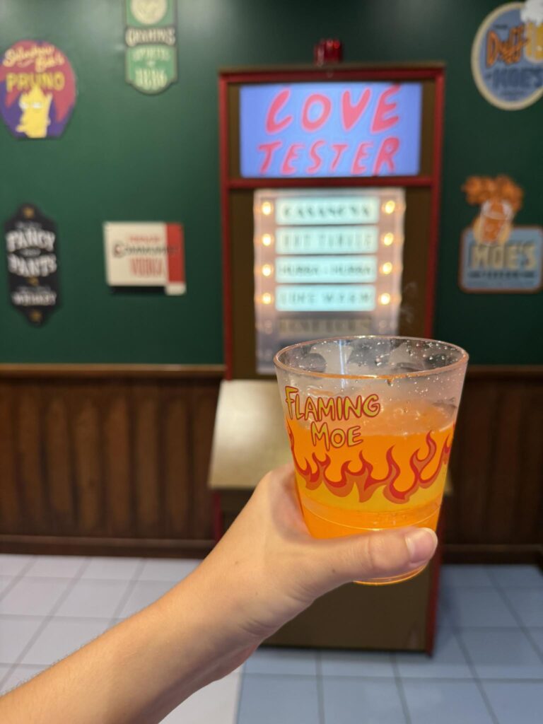 Inside Moe’s, you’ll find the Love Tester machine, the classic bar stools, and of course, the chance to order a Flaming Moe — which turned out to be one of our favourite themed drinks of the trip.