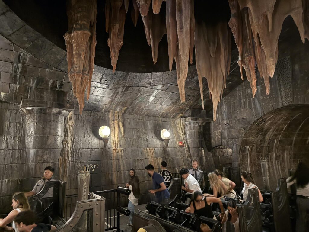 The must-do attraction here is, of course, Harry Potter and the Escape from Gringotts. Entering beneath the fire-breathing dragon and descending into the vaults is unforgettable. The ride itself is a multi-dimensional mix of coaster, simulator, and dark ride, and it’s nothing short of breathtaking. Honestly, I struggle to think of a single Disney ride that matches it for immersion and thrills. It really is like stepping into the movie.