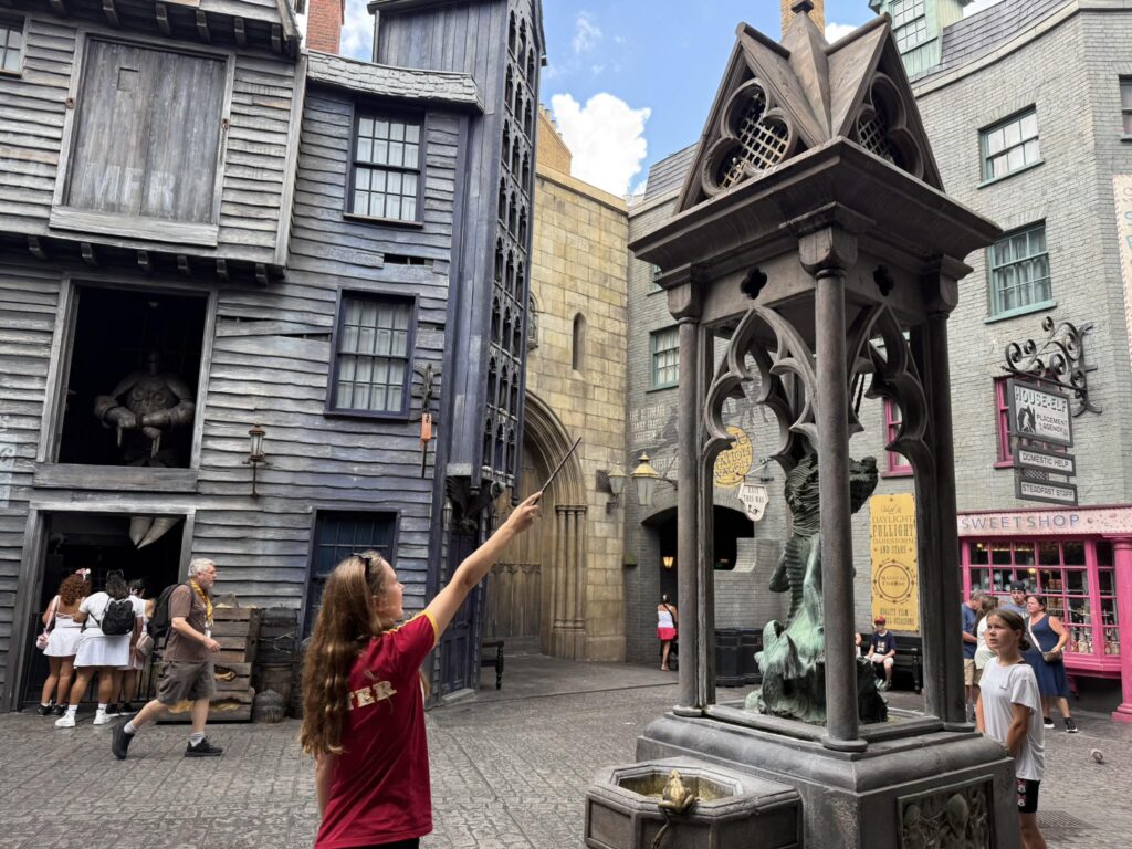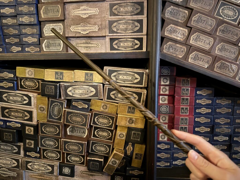 Holly brought along her interactive wand from our last visit, and to our delight it still worked perfectly. There are interactive points throughout Diagon Alley where you can cast spells and make magical effects happen, from shop windows to hidden alleys. It’s an extra layer of fun that really brings the films to life.