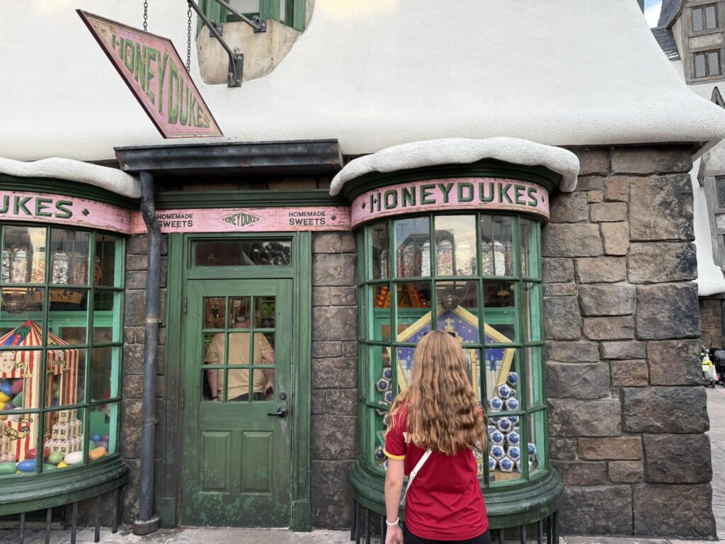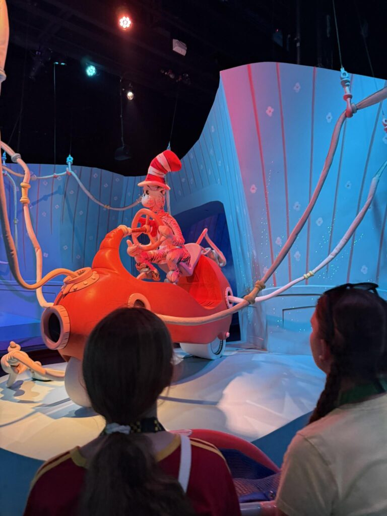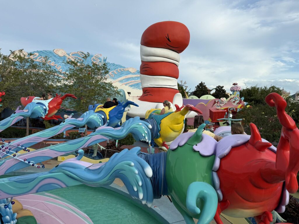 Before the show, we revisited Seuss Landing, which had always been a favourite when the girls were younger. It was lovely to experience it again — from The Cat in the Hat to One Fish, Two Fish — before heading into Hogsmeade as dusk fell.  Hogsmeade is just as spectacular as the Wizarding World of Harry Potter – Diagon Alley.  We cast more spells and took advantage of the low wait times to take multiple rides on the Flight of the Hippogriff family coaster.