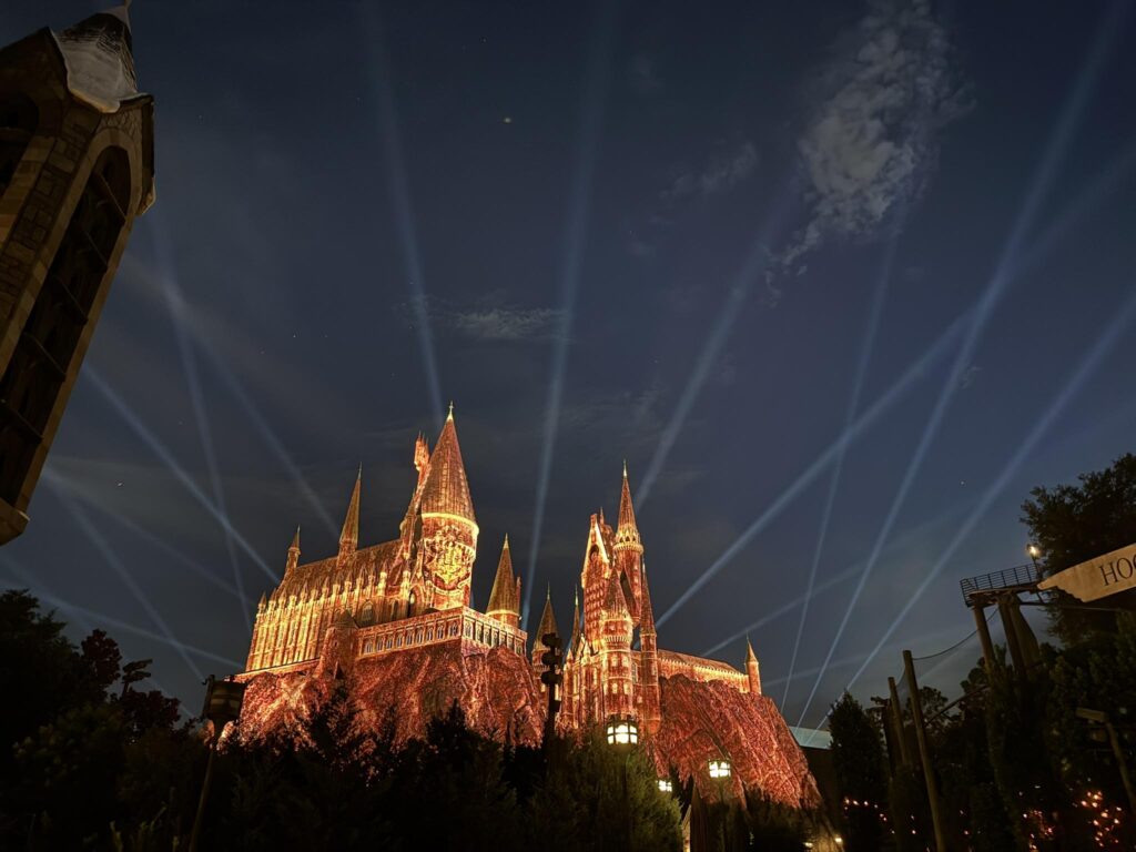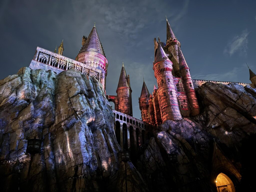 Because we had park-to-park tickets, we hopped over to Islands of Adventure for the evening. We’ll share more about that park in our next article, but the highlight was undoubtedly seeing The Nighttime Lights at Hogwarts Castle for the first time. Watching projections dance across the castle as the four Hogwarts houses were celebrated in light and sound was pure magic.