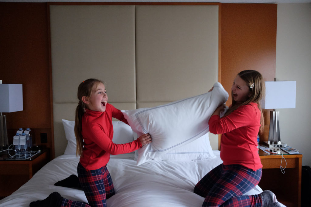 We walked into our room on the 35th floor, which could be best described as our own private apartment with two bedrooms, 3 bathrooms and a huge living area. Best of all, from the kids perspective, was that their double room had age appropriate toys, books, games and a really cool tepee and skittles set up in the living area.
