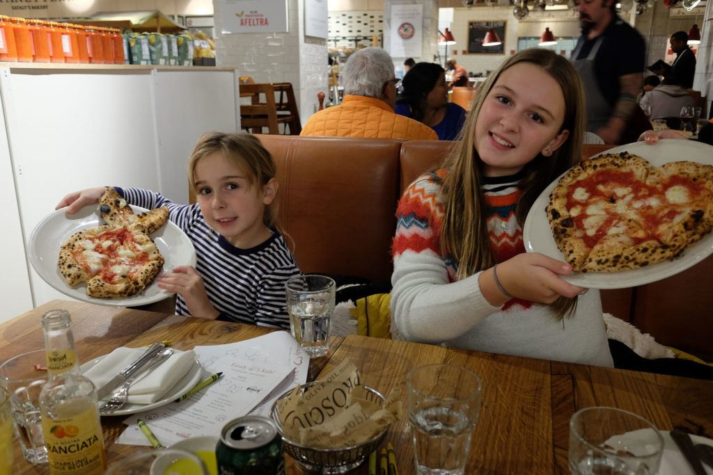 We ordered three pizzas – cheese and tomato for the kids, pepperoni for Ian and caramelised onion for myself, all of which were amazing – we were a little ambitious though, the pizzas here are huge!