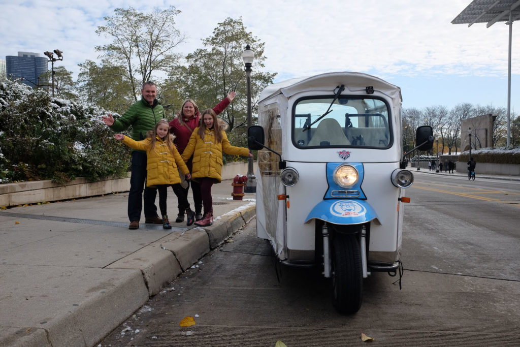 We pre-booked an hour tour with Tuk Tuk Chicago before we arrived in the city and right on time our 3 wheeled electric vehicle arrived along with our personal tour guide and TukTuk captain Shaun, who was really friendly and knowledgeable, pointing out landmarks and points of interest to us, as we zipped through the streets.
