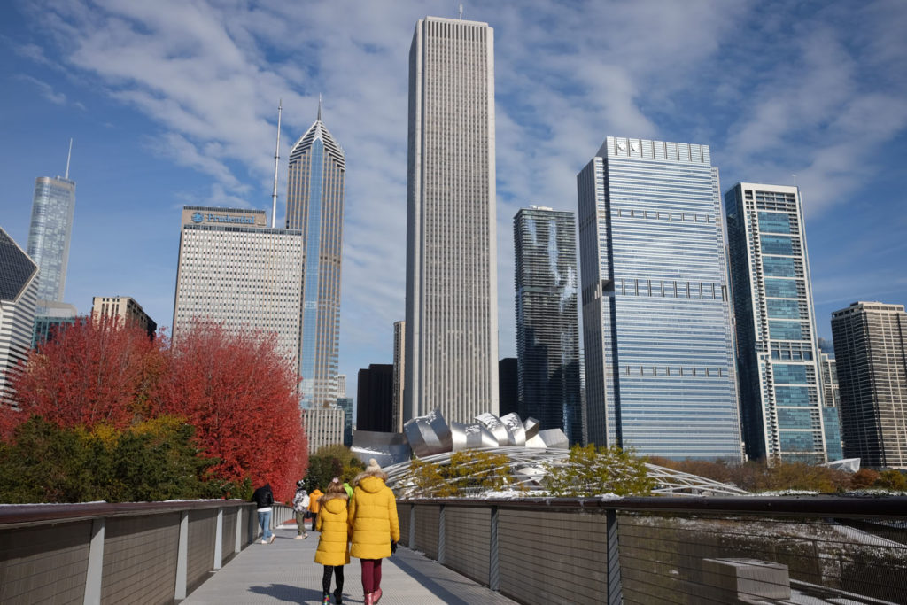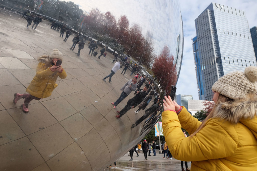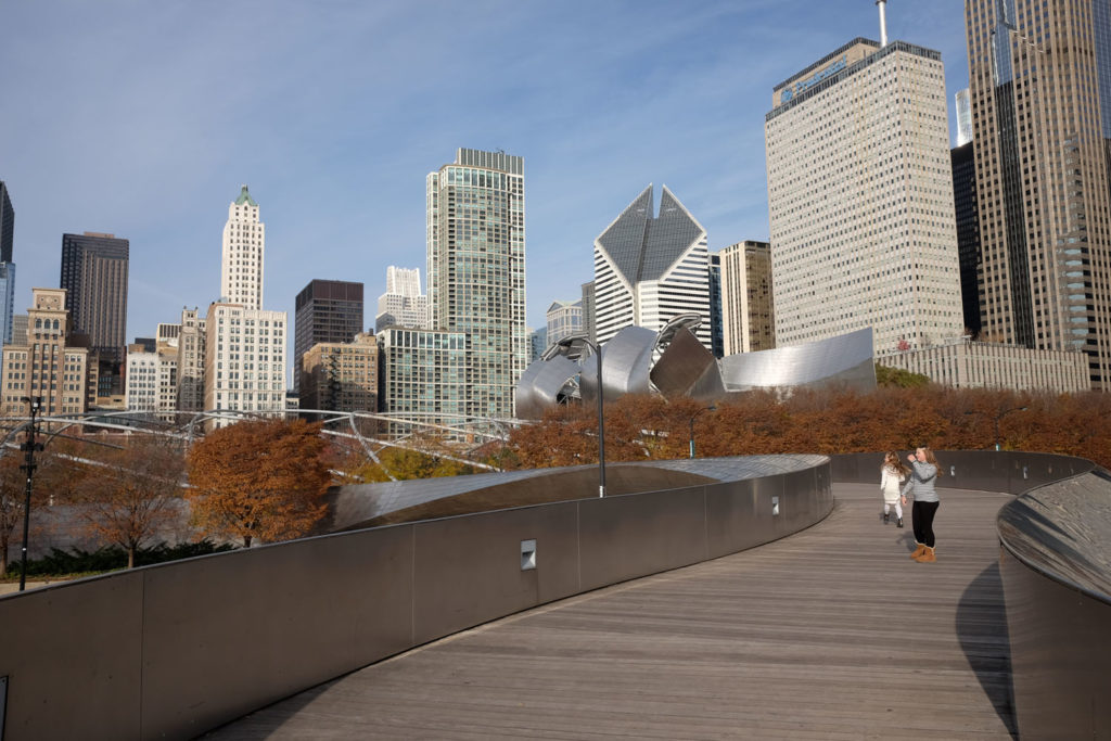 The weather started to warm up towards the end of our trip and we started the day back at Maggie Daley Park, crossing the impressive curved BP bridge designed by Frank Gehry into Millennium Park..