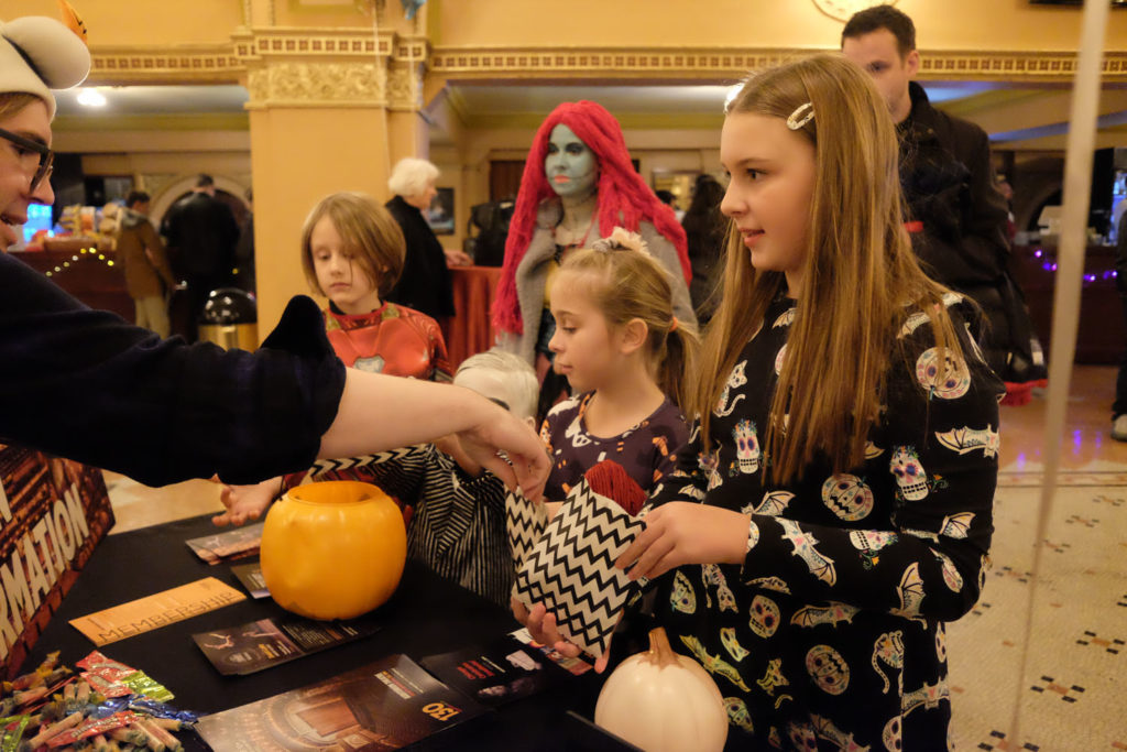 The girls arrived in their costumes to enjoy the pre-show trick or treat event where they filled their bags with American candy in readiness for the performance.