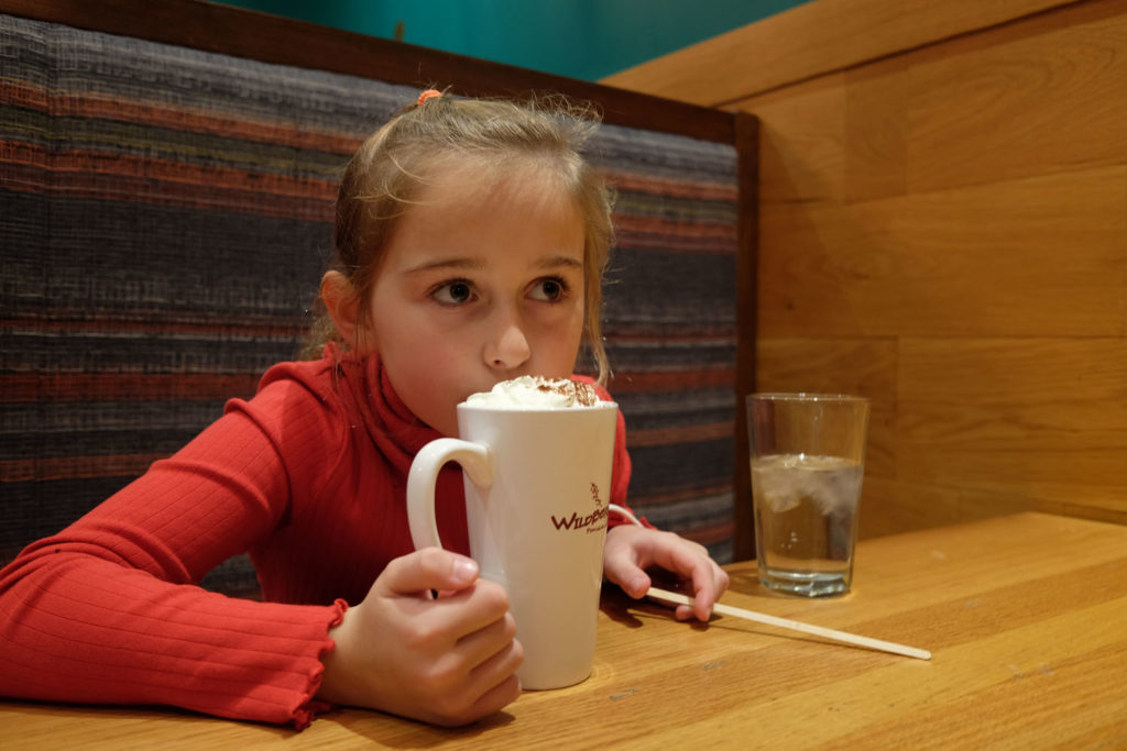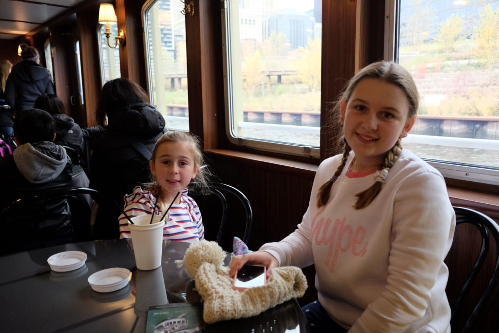 The girls meanwhile were happy in the warmth of the inside cabin as they enjoyed hot chocolate whilst taking in the views.