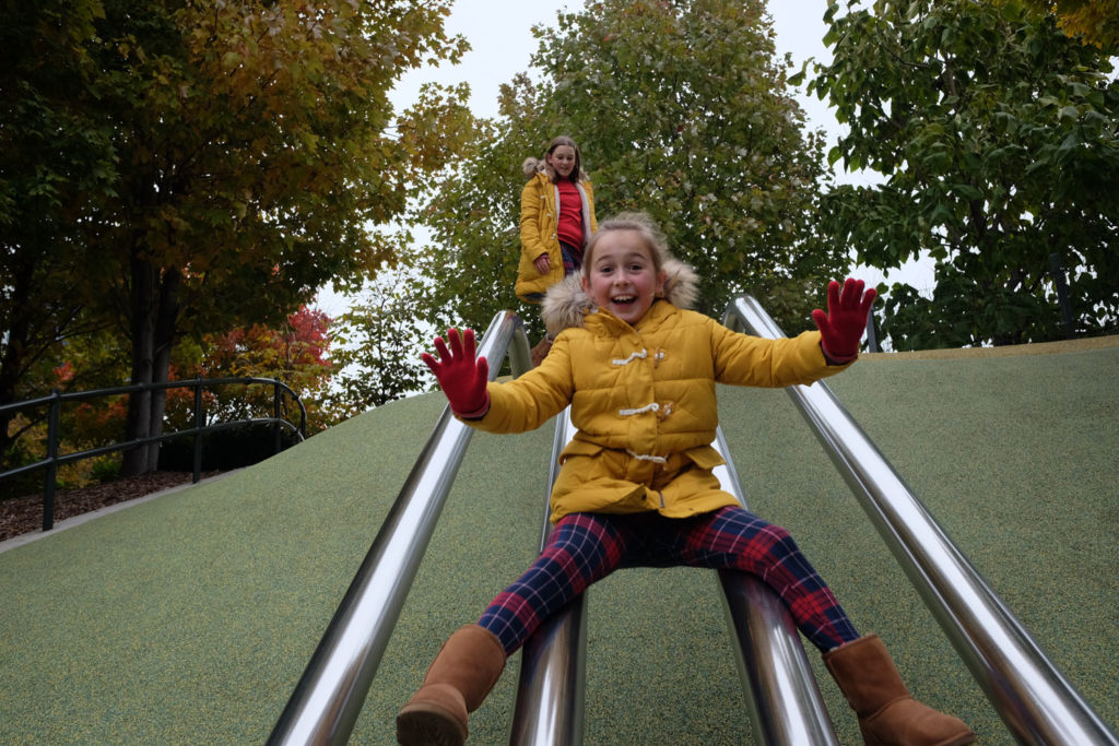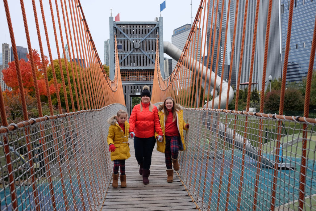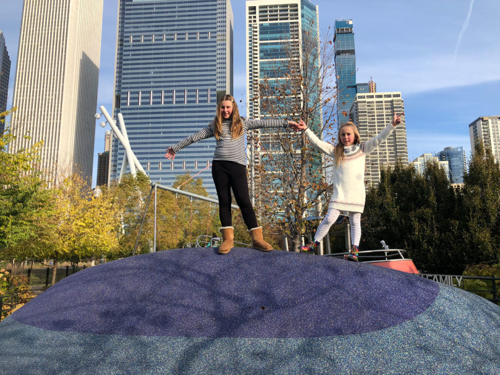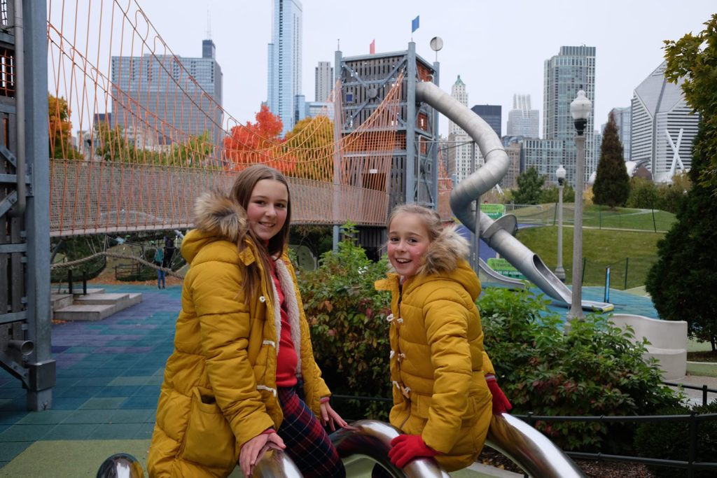 Maggie Daley Park was one of the girls’ favourite areas of the city. If you were designing the perfect playground then this would be it, with lots of huge slides, ice skating rink, climbing walls and a giant suspension bridge – best of all it is framed by the iconic city skyline.