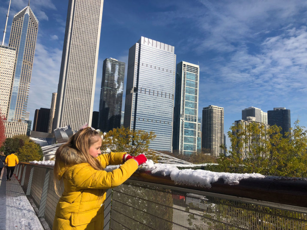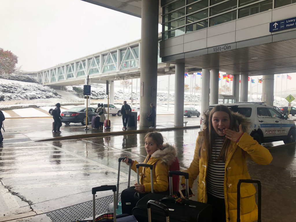 We arrived into a snow covered Chicago O’Hare airport much to the delight of Chloe and Holly after a storm had dumped a record-setting snow amount for Chicago for Halloween.