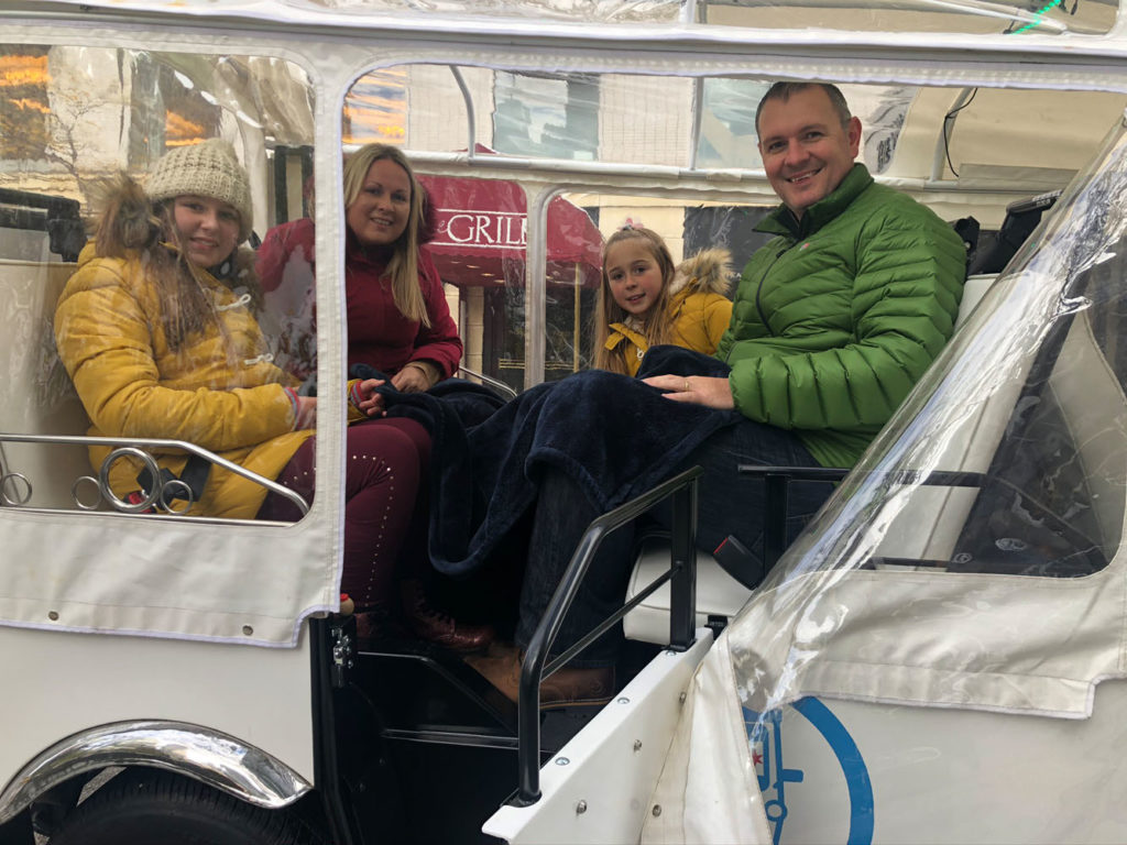 On a freezing cold day it was a really fun and warm way to get around the city. It’s the little touches that stood out like the heated seats and blankets plus the puzzled looks of pedestrians and cars as we whizzed past at 25mph.