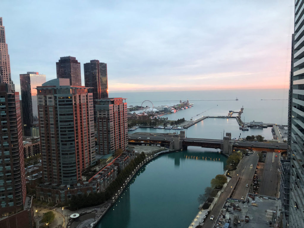 Because of the unique triangular design of the hotel our rooms also had some of the best views of the city of Chicago from its numerous vantage points. One of my favourite things to do each morning was opening the curtains to see the sunrise over Lake Michigan and the magnificent skyline of the city.