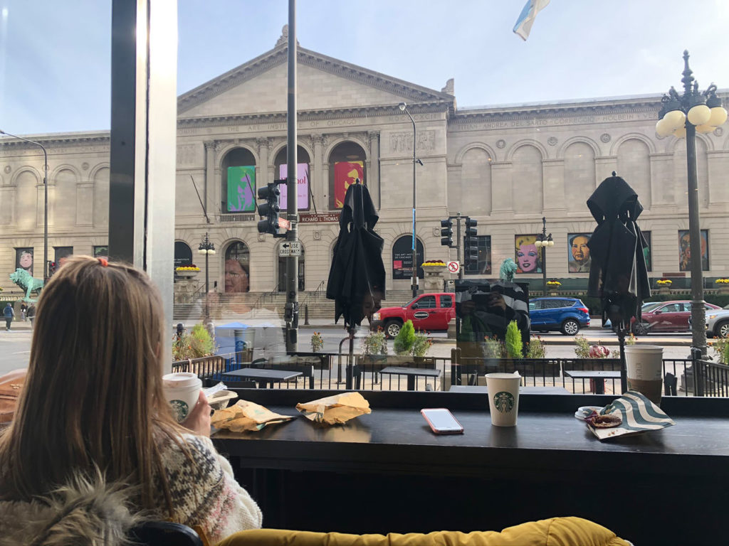 At the Art Institute of Chicago we stopped for a photo with the famous lions that guard the entrance. The girls recognised this from the 80s classic movie – Ferris Buller’s Day Off! We grabbed a quick breakfast at Starbucks opposite which provided us with amazing views of the Art Institute and the artwork of Andy Warhol.