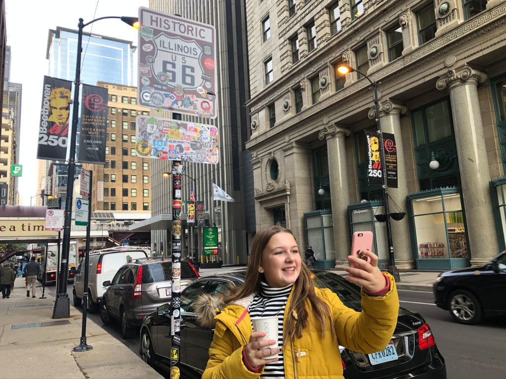 Chicago is home to the start of the iconic Route 66 and the road begins right next to the Starbucks where we had just had breakfast. We followed the route, taking numerous selfies and taking in more of the gorgeous architecture that is everywhere in this city on our way to the Skydeck.