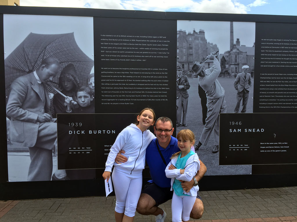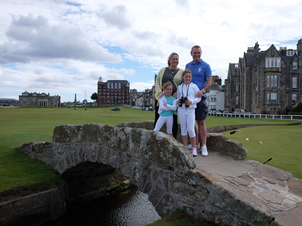 Leaving the hotel we made the short 10 minute walk from the Old Course hotel into St Andrews which runs alongside the golf course taking in the breathtaking views. En-route we stopped off for a family photo at the famous Swilken Bridge, where many golfing legends have had their photo after winning the Open.