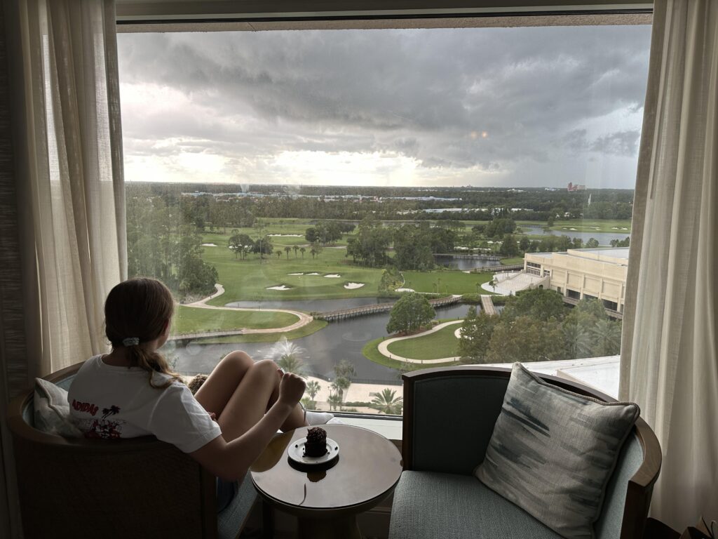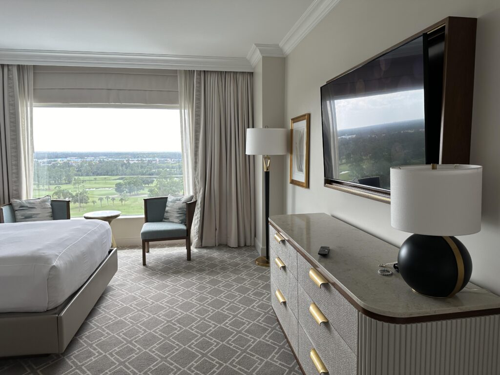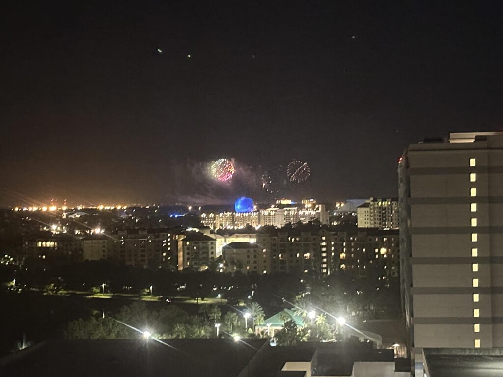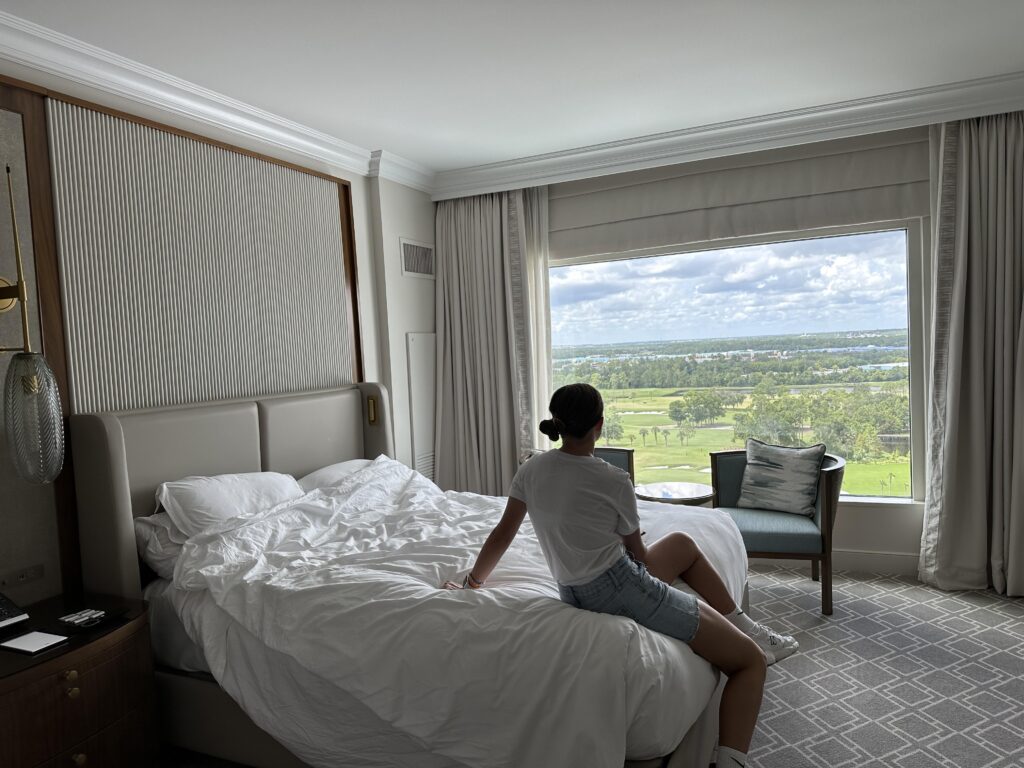 Our room on the 15th floor offered incredible vistas from its multiple vantage points of the expansive Walt Disney Resort and incredible firework displays each night from Epcot, Magic Kingdom and the drone show at Disney Springs.