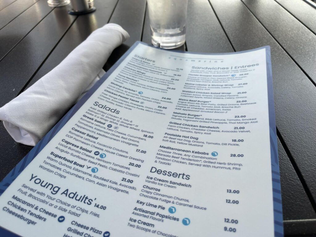 This is another of the restaurants here that was closed when we visited previously, but it was looking really impressive after its refurbishment. This fine dining is considered one of the best restaurants in Orlando, attracting guests who aren’t even staying here. The menu looked delicious and a perfect venue for couples, but with children we opted for more casual dining options.