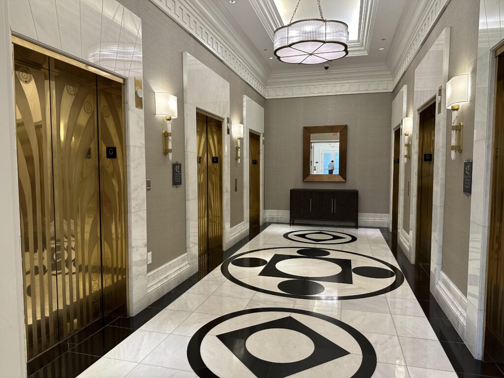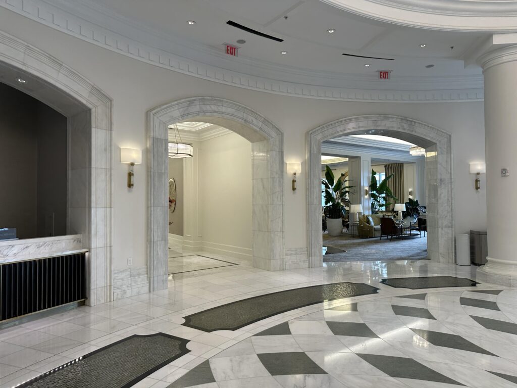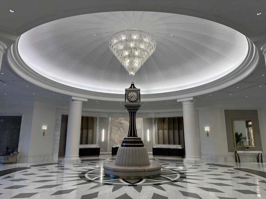 Entering the palatial lobby your eyes are drawn to the iconic clock tower, the centrepiece of this incredible lobby rotunda with its high ceiling, gorgeous white marble and grand marble arches.