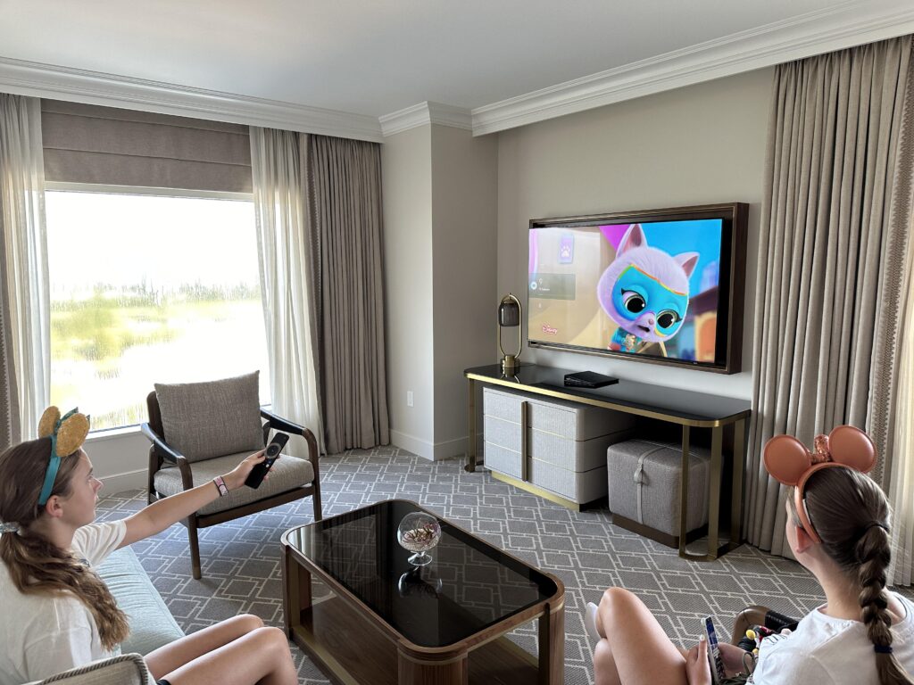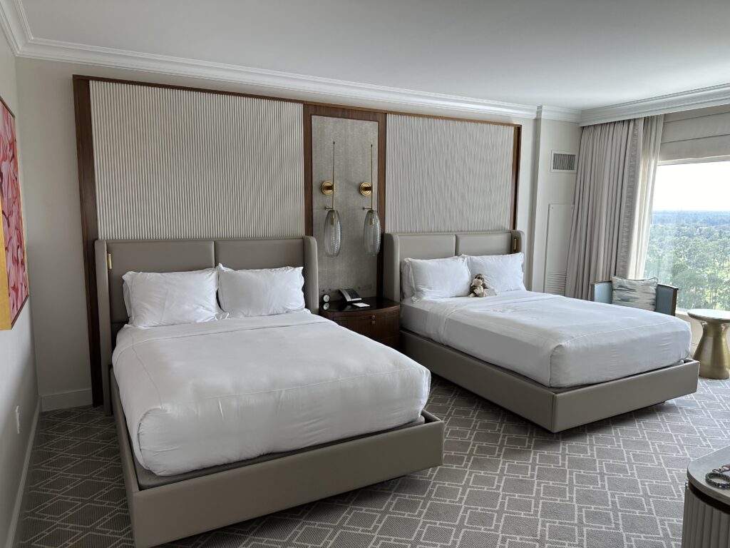 We stayed in a double queen deluxe suite, and at 945 sq ft it can be best described as our own apartment sized space right in the heart of Walt Disney. We had actually stayed in the same room type last year and we returned as it’s perfect for families, but the new redesign has really raised the level of comfort and luxury -it’s hands down one of the best suites we have stayed in.