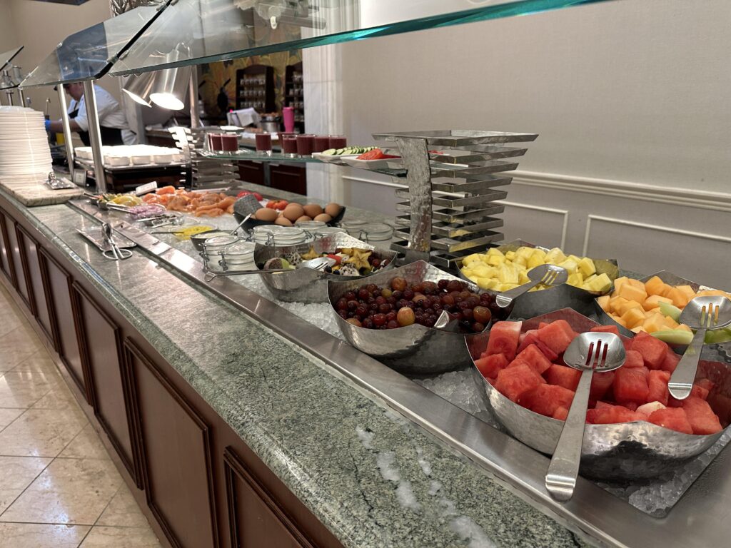 We had the breakfast buffet option which offered everything you would want to start your day, hot cooked breakfast to small pastries, a gluten free section, fresh fruit, yogurts and cereals.
