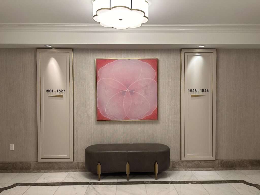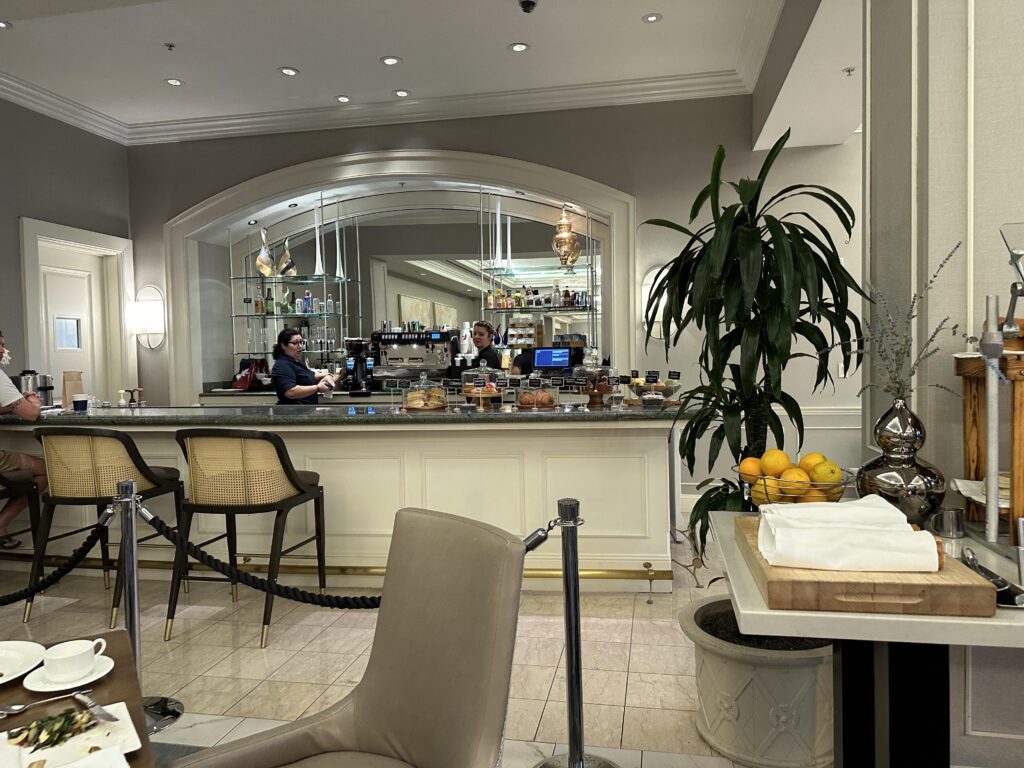 Also in the lobby area was the concierge desk and we caught our first glimpse of Peacock Alley, the hotels lobby lounge which was closed during our previous visit because of the renovations. There is new artwork , lighting and seating areas creating a really stylish and inviting lounge bar.