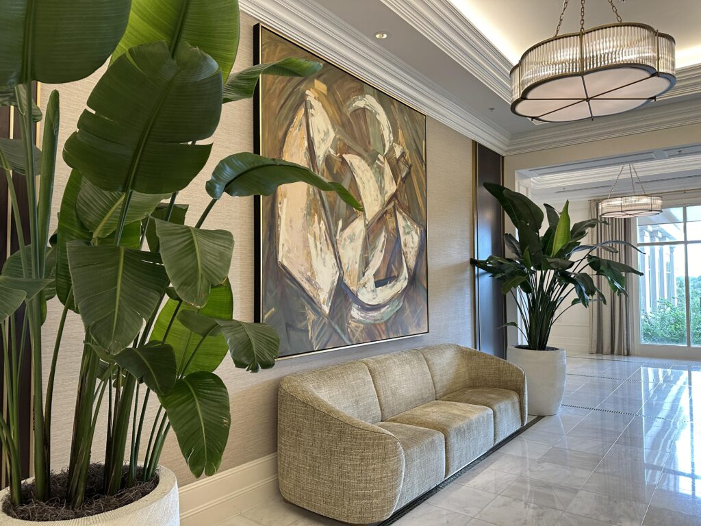 Arriving down Bonnet Creek Resort Lane, just past the Signia by Hilton Orlando Bonnet Creek you make your way past towering palm trees, lush gardens before arriving at the hotels spectacular entrance façade and water fountain – you know that you have arrived at a luxury destination. The Bonnet Creek area of Disney is stunning and although you are able to see the parks from the hotel it is far enough removed from the hustle and bustle of Disney parks and resorts.