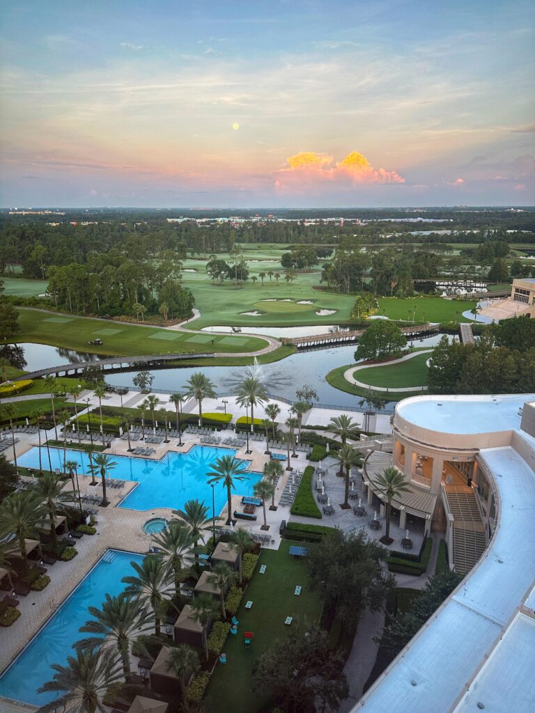Florida is known for its spectacular golf courses and for golfing fans, the hotel has a beautiful 18 hole course lined by cypress trees. One of our personal favourites were the walking trails here, which weave through the manicured grounds at the resort between the two properties – the Floridian skies at sunset really are something else, especially from the boardwalk trail.