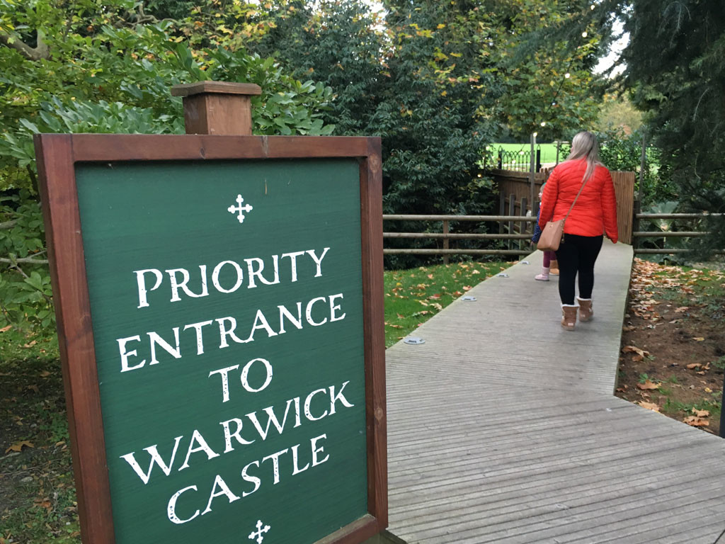 Walking from the Knights Village via a private entrance to the Warwick Castle grounds allowed us to explore the beautifully kept gardens and admire the delightful autumn scenery, giant oak trees and peacocks that roam freely in front of you.