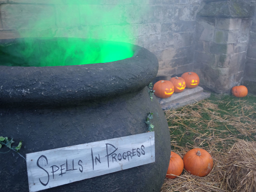 We made our first visit to the Princess Tower which has been transformed for Halloween into the Witches Tower (it’s worth visiting this first as spaces are limited). Visiting at dusk just added to the superb spooky theming that Warwick Castle has cleverly created. The girls faces lit up as they spotted the giant cauldron at the steps of the tower, complete with interactive singing pumpkins!