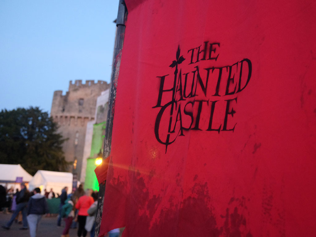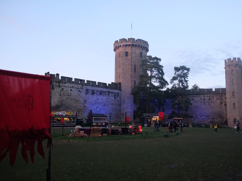 We took advantage of the two day tickets which are included as part of your Warwick Castle stay and made the short walk from our beautiful medieval themed lodge to visit the castle at dusk. For the Haunted Castle Halloween event the castle was open until 9pm. Having the grounds lit up in different colours and a giant ‘The Haunted Castle’ projected against the side of the castle wall, just added to the Halloween ambience.