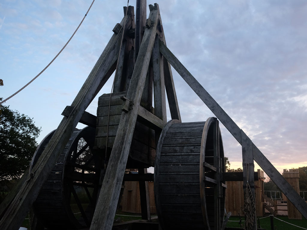 First up was the Trubuchet. When we checked into the Knights Village we picked up a schedule of daily events and saw that the Trubuchet was due to fire at 4.30pm just outside the castle walls. It’s something that we have always wanted to see but have never had the chance.