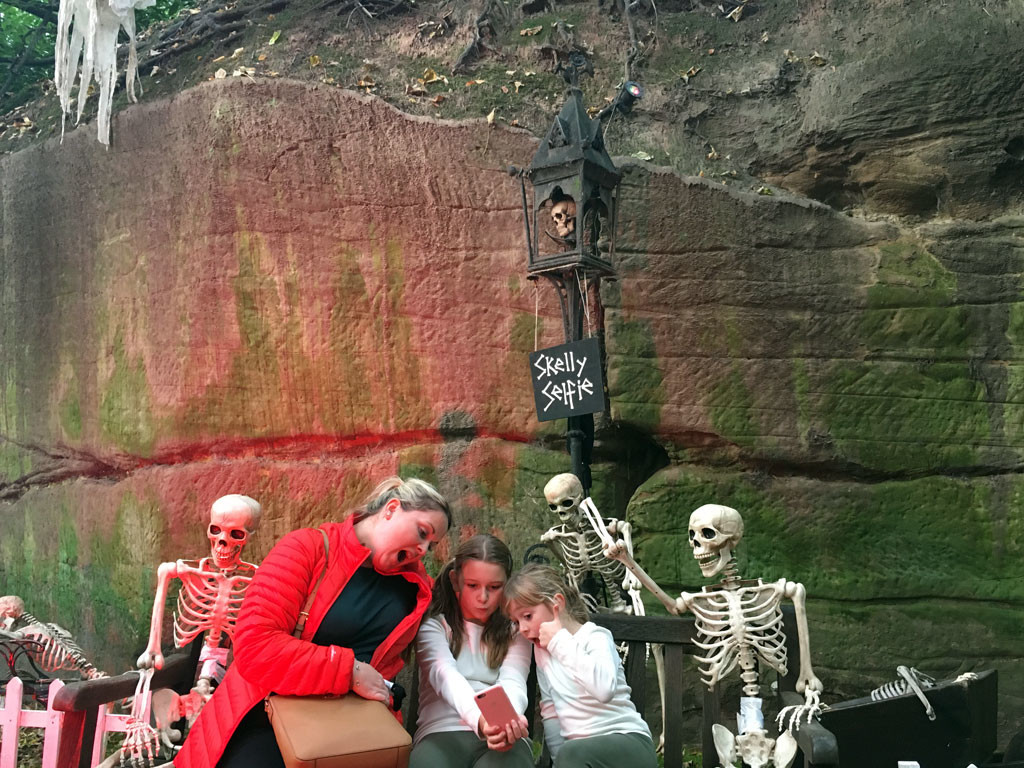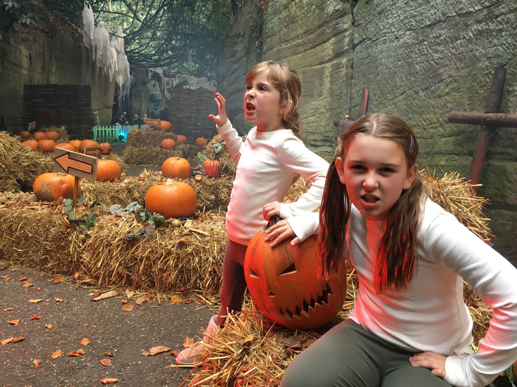 Buzzing after spending time with the witches the girls went in search for more Halloween fun at the haunted hallows. On this spooky trail we encountered green swamps, giant spiders and jumped out of our skins when what we thought was a pumpkin decoration turned out to be one of the really fun creepy actors that you encounter at every turn.