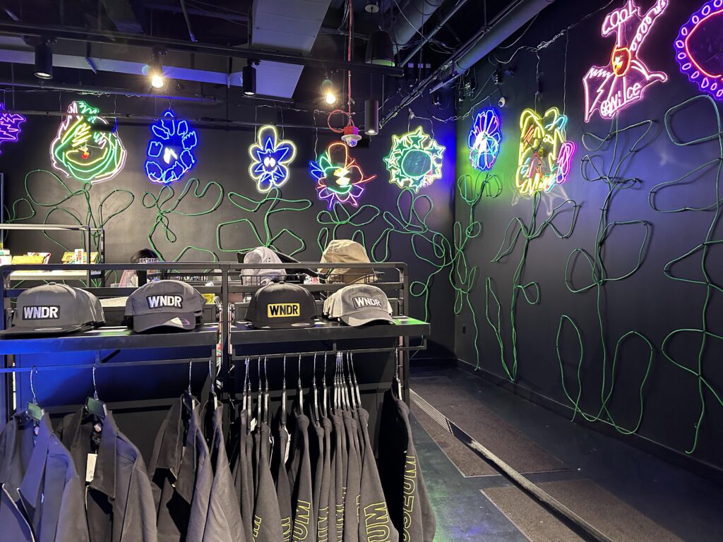 The main attraction at WNDR Boston is the incredible “Let’s Survive Forever” installation created by renowned Japanese artist Yayoi Kusama. Only 8 guests at a time are allowed in this room and we had to put a cloth cover over our shoes because of the fragility of this exhibit.