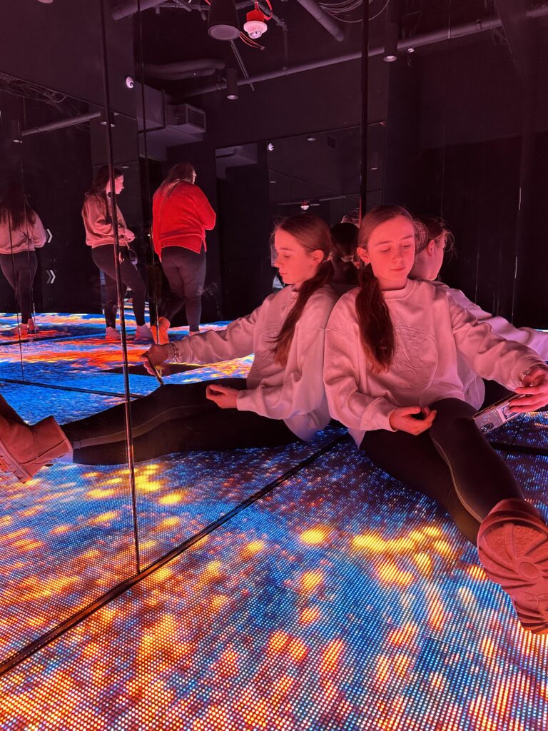 Our one hour long journey started at the “Light Floor” a surreal passageway full of lights, mirrors and motion-activated sensors, lighting the floor as we made each step giving us all the feeling that we were being transported to another multi-dimensional world, this was one of our first of many selfie spots.