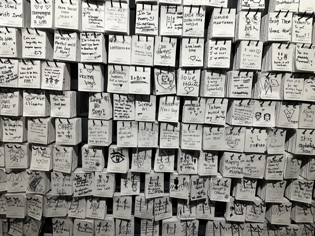 There are a series of rooms and spaces to explore, some of our favourites were creating patterns on the illuminated wall and the Wisdom Project, where we could share and learn wisdom with other visitors.