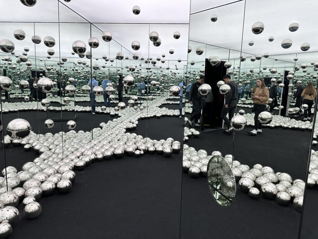 Inside we found a spectacular room filled with mirrors and stainless steel balls where we could look but not touch – it’s the only part of the experience that wasn’t interactive but it did create amazing photo opportunities, the only downside was that you are restricted to under a minute in this space, which was not long enough.