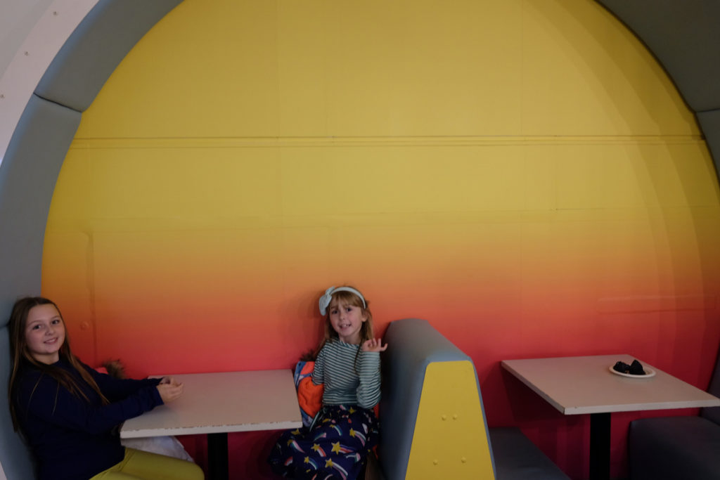 After a busy morning we stopped for lunch at the really brightly coloured sun exhibition café on Level 2 which had some really cool seating.  Better still their sun and space themed cakes were delicious.