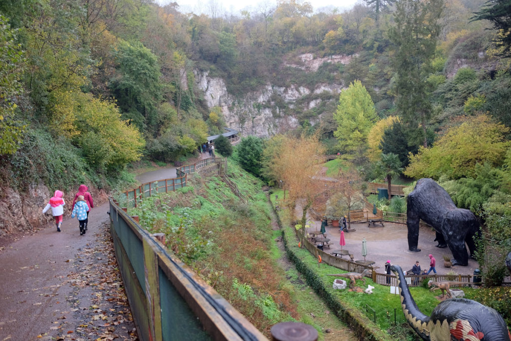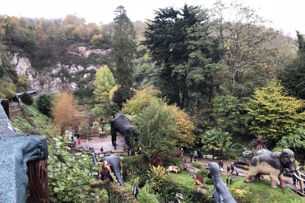 After collecting our tickets we made our way up the hill in the rain in our wellies toward the entrance to the caves, taking in the views of the valley below, where the other attractions at Wookey Hole are located, including a dinosaur park and a fairy garden – more on this later.