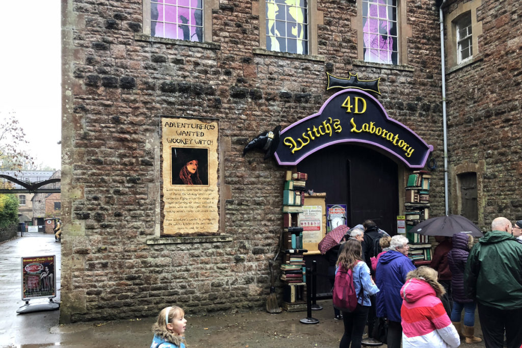 Inside you enter a witch’s kitchen which has been turned upside down by a spell – so everything is on the ceiling.  After meeting the Wookey Witch a secret door opens in the kitchen into the 4D cinema which was playing Ice Age – that the girls had great fun watching.