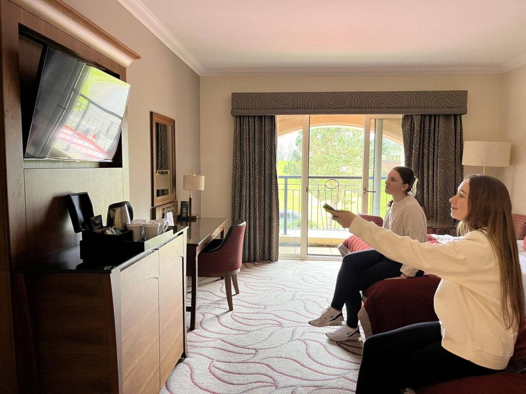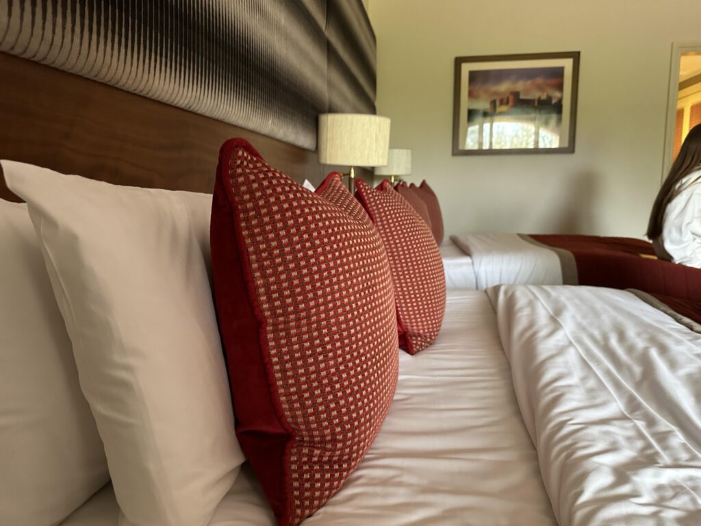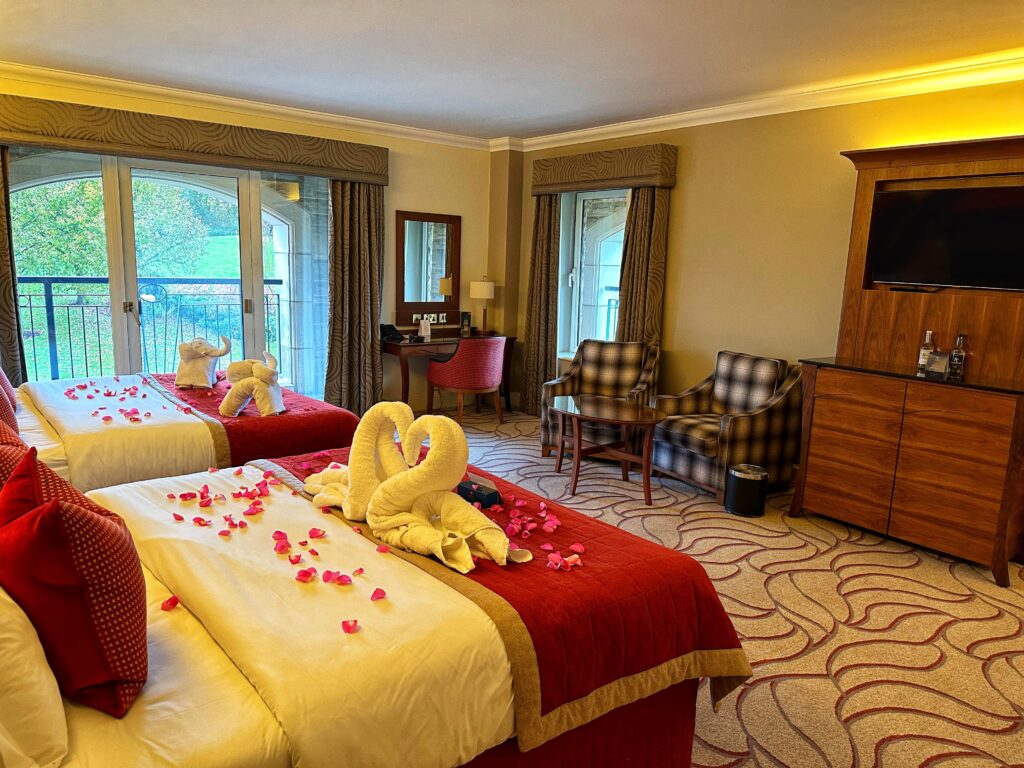 The Celtic Manor is a huge hotel with 330 rooms with a wide range of family rooms to choose from. On this trip we stayed in a two queen bed deluxe family room, which offered more than enough space for the four of us and was perfect for an overnight stay. I also loved the fact that we had a balcony with views over the front of the property and the grounds of the resort.