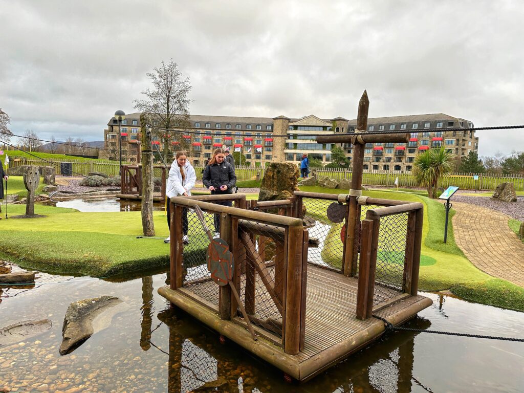 Next up was adventure golf, an 18-hole course inspired by famous holes in golf including St Andrews and Pebble Beach to play on which was great fun as we all tried to outscore each other. Apart from a hole in one for Chloe, another highlight was when we had to float across the lake on a Celtic inspired raft to complete one of the holes.