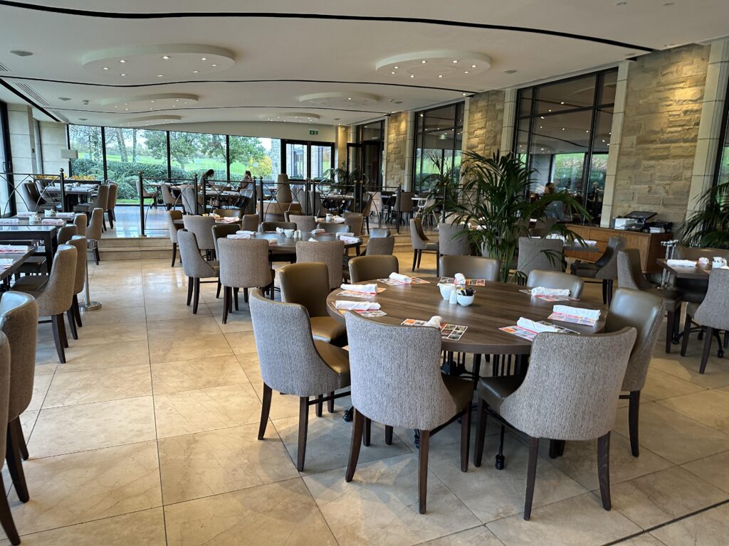 We booked dinner at the Grill, a restaurant located in the clubhouse which was a 5 minute shuttle ride away from the main hotel. This family friendly restaurant is so cosy in winter, with its high vaulted ceilings, exposed beams and cosy fires – it felt more like a mountain lodge in Canada and had spectacular views over the golf course. The food and service here was impressive, with family friendly menus and extremely attentive service.