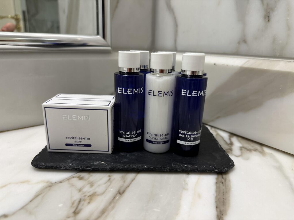 The marble-clad bathroom in our room had a separate bath and walk in shower and an abundance of my favourite toiletries – Elemis! As you would expect at a five star hotel, there were also white fluffy bathrobes and slippers – perfect for a visit to the pool and spa.